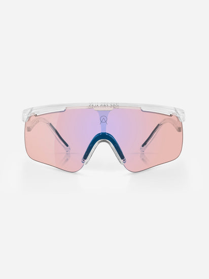 Photochromatic lens. Guarantees excellent visibility and protection, both in poor and intense light conditions. The pink tint of the OFF lens condition offers a bright vision field and improves reaction time in low light conditions.
