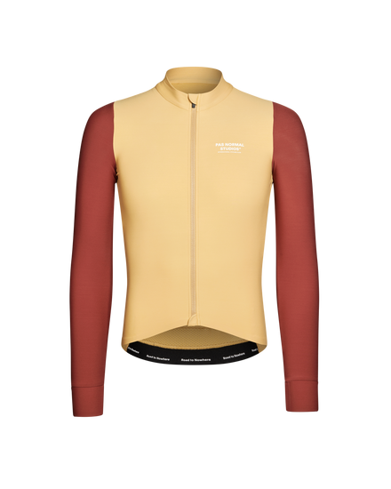 The Mechansim Long Sleeve Jersey is suitable for layering or as a standalone jersey. All through the seasons. The Mechanism Long Sleeve Jersey exhibits the Pas Normal Studios mentality of seamlessly combining visual aesthetics with quality, technical apparel. The soft fleece-backed fabric makes the Mechanism Long Sleeve Jersey perfect for both high-intensity training and racing. Use it as a standalone outer layer on chill mornings or late afternoons. Or pair it with a heavier base layer and a gilet or jacket when the temperature drops.